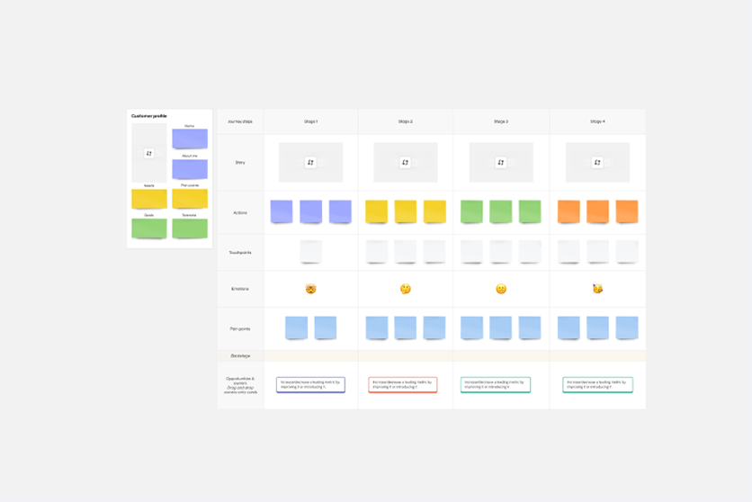 Miro의 비즈니스 아키텍처 다이어그램 템플릿은 복잡한 기술적 관계를 명확하고 협업적인 비주얼로 변환합니다. 고급 다이어그램 작성 기능을 활용하여 만들어진 이 템플릿은 실시간 및 비동기 협업을 지원하므로, 기업 전반의 이니셔티브를 해결하는 다기능 팀에 이상적입니다.